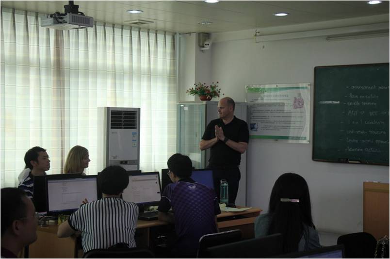 8月4日上午,李作为副校长、组织人事处张华处长来到教学楼601室为澳大利亚职业教育“TAE四级证书师资培训班”四名澳方老师送别致谢。李作为副校长代表学校感谢来自澳大利亚的四名教师不辞辛劳为我校教师传授TAE四级证书的相关理论知识,感谢我校的38名教师在暑假期间坚持学习,也寄望老师们在今后的工作中继续思考、总结、提升,有意识地将TAE教育理念、手段和方法应用到我们的教育教学工作中去。John也代表澳方教师向李作为副校长、张华处长及参训的各位教师致谢,感激学校为澳方教师来华期间的起居安排,感谢教学过程中各位教师对澳方教师的支持和照顾。